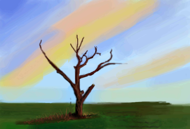 gosh, that's horrible that you always feel bad. I hope the steak stayed with you. Is this painting a reflection on how you feel? heh..jk...I'm with CrimsonKing, my eye stays on the horizon. hope you're 60% by now. :)