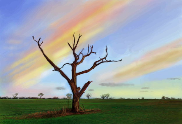 gosh, that's horrible that you always feel bad. I hope the steak stayed with you. Is this painting a reflection on how you feel? heh..jk...I'm with CrimsonKing, my eye stays on the horizon. hope you're 60% by now. :)