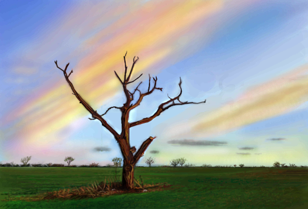 gosh, that's horrible that you always feel bad. I hope the steak stayed with you. Is this painting a reflection on how you feel? heh..jk...I'm with CrimsonKing, my eye stays on the horizon. hope you're 60% by now. :)