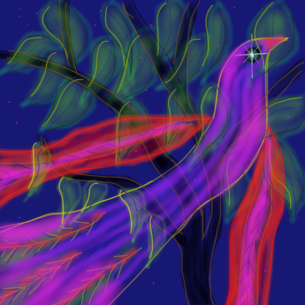 that's a pretty cool abstract bird! Love the colors and their transparency =)