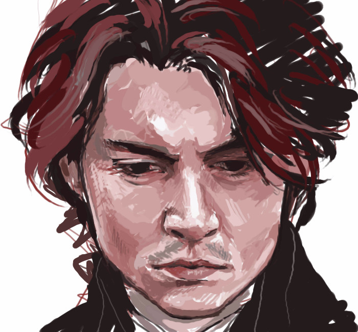 Wow this is excellent on so many levels. You got his features perfectly but even better, you captured an expression that leaves no doubt about who it is. That you did it with big, bold, fast brush strokes is so impressive!