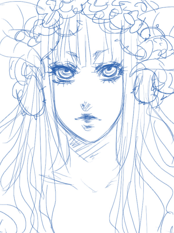 Oh wow. I love the style so much, with the clean lineart, and the gorgeous colouring.. Blood red eyes, lashes black as ebony, hair the colour of snow, wreathed by red red roses.. Looks a bit like another take of Snow White. ^^ Beautiful!