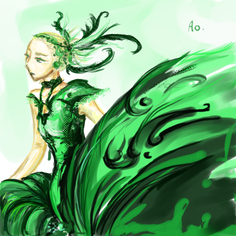 Was reading the first few chapters of xxxHOLiC at the same time... Probably a lil influenced by that. :3Started off with random dabs of green which led to volumous skirts, which led to this. haha