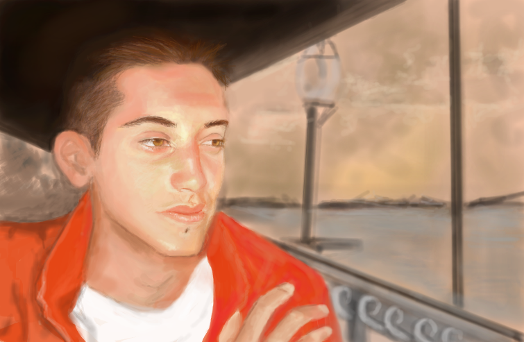 Gorgeous skin. I love how the bright colour of his shirt is reflected in the highlights on his skin. Nice expression, too.