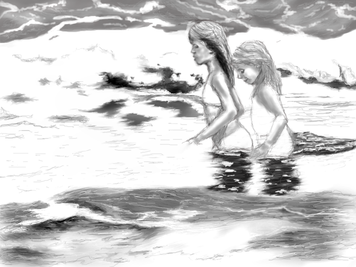 A friend of mine took this pic on her vacation of her sweet lil girls enjoying the sand and surf. I decided to surprise her with a drawing of it. I'll never be completely satisfied with the results but it'll do.....