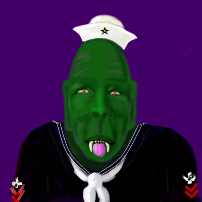 "Popeye" the sailor man??? I think he ate toooo much spinach, and he turned green...."lol"!!! cute draw!! :)