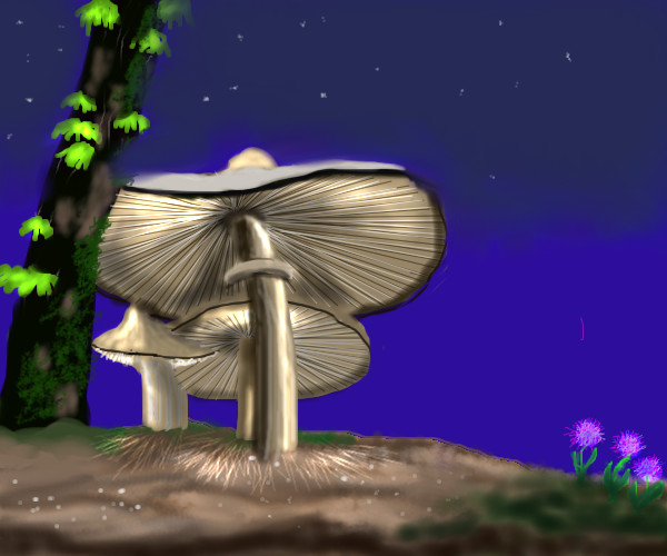 I really like the way you did the "underside" of the mushrooms......cool draw!!! :)
