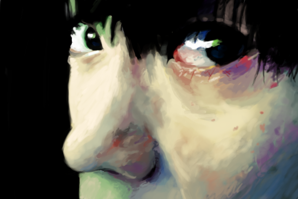 I usually don't care for this type of drawing but your use of color, use of (brush strokes) and great expression on a partial face is fantastic. I think your work has changed my taste in art