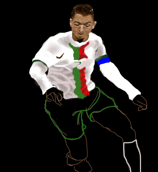I really like this one.....great start pawillie! I'm anxious to see it finished! Is he a soccer player? :)