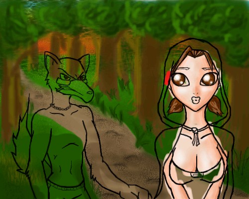 Wow, she has some formidable nunga-nungas. Pretty, though. ^_^ I think the wolf is shexay... but that's just me.