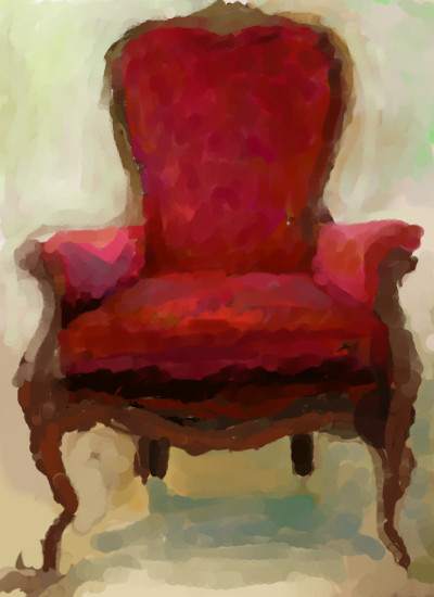 Looking at the delicious reds and greens in this made me crave watermelon. And I don't even like watermelon. I do like how much this looks like a painting...those green shadows are wonderful with the red upholstery.
