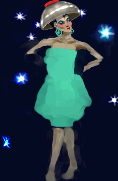 rotfl@Lori. I know! That's why I picked this particular photo to use as a reference...that STUPID hat! And the one in the photo is even stupider, if possible. You be the judge. BMW, i love shoes so I had to draw some that weren't quite as weird as the ones on the model. I guess my thought for the stereotypical high fashion ensemble is... besides supermodels during fashion shows...who wears this stuff? Ever? Oh, and also I wanted to depict the ugliness of the typical supermodel body. They look like spiders or crabs or something. Too skeletal.