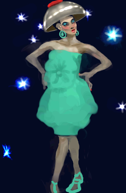 rotfl@Lori. I know! That's why I picked this particular photo to use as a reference...that STUPID hat! And the one in the photo is even stupider, if possible. You be the judge. BMW, i love shoes so I had to draw some that weren't quite as weird as the ones on the model. I guess my thought for the stereotypical high fashion ensemble is... besides supermodels during fashion shows...who wears this stuff? Ever? Oh, and also I wanted to depict the ugliness of the typical supermodel body. They look like spiders or crabs or something. Too skeletal.