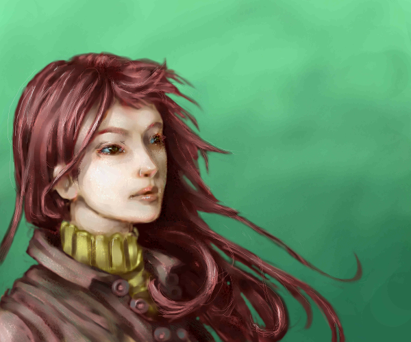 added more green...... well I don't have an idea how to proceed on this. there should be some kind of berry though...maybe the buttons of the coat!