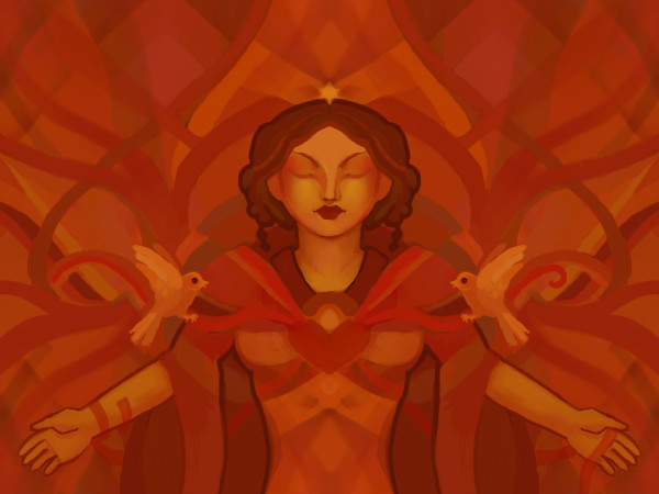 that first pic looks scary,but this last one looks nice and peaceful like those birds picked her up during meditation very nice colors and shapes i see.cooo
