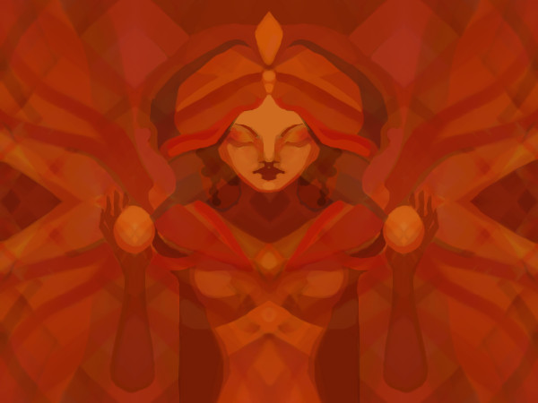 that first pic looks scary,but this last one looks nice and peaceful like those birds picked her up during meditation very nice colors and shapes i see.cooo