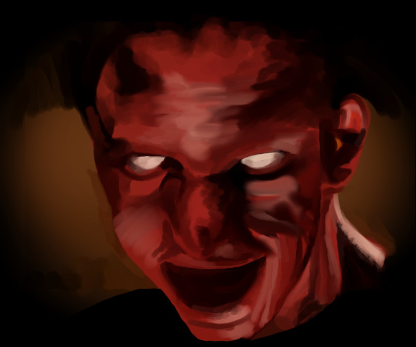 I wouldn't want to run into this man, no way. Interesting skin, the texture in it..........great coloring, deep and dark.