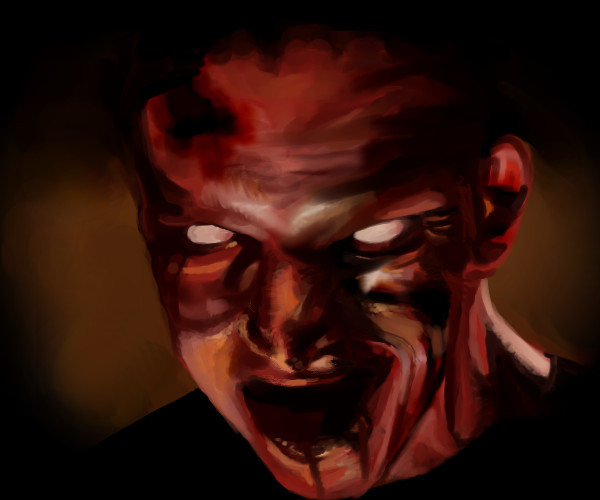 I wouldn't want to run into this man, no way. Interesting skin, the texture in it..........great coloring, deep and dark.