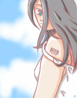 Nice picture. The arm seems too big, or the bead is too small. The background is kind of simple. Nice lineart. :3