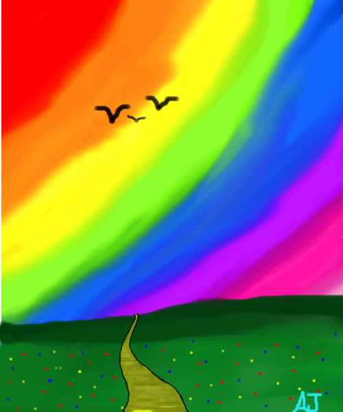 i watched the wizard of oz earlier before i drew this and i love the song somewhere over the rainbow so i drew this. i was kinda of experimenting with the smudge and blend but i thought of the wizard of oz so i decided to have a yellow brick road and poppie flowers. write nice comments