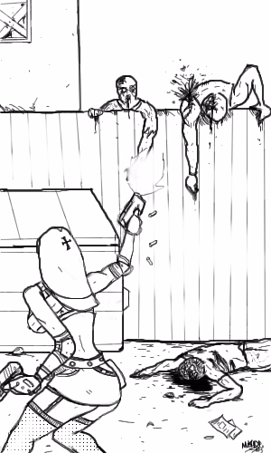 Yeah! Zombies! This is really good lineart,I wish I could get my lines like that,if I could I would take joy in my work and color instead of rushing! In other words,be proud of your work and color it!