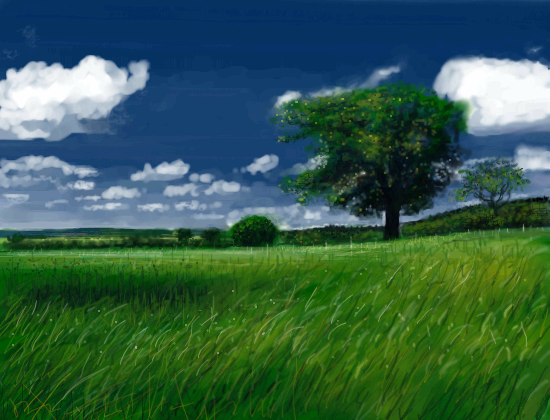 The grass is so green, the sky is so blue, the clouds are so white. It's almost like a dream.