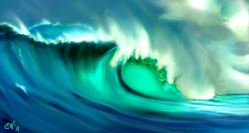 This is soooo pretty. It makes me want summer to be here. I'm loving the blues and greens together, the mist from the wave if wonderful. I love the sky too especially the top right corner, its almost psychedelic in a nice and subtle way :)