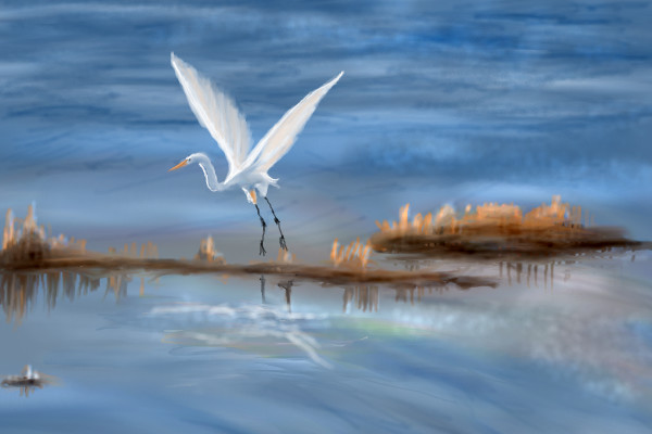 It's funny because the herons were I live are blue, (colour, not sad) though they seem to be by themselves all the time so who knows? Sometimes while walking along the shore or fishing in a lonely bay they'll take flight from the tall reeds. Always a special sight to see! I like how you played with the water and reflections in this with a hint of setting sunlight. Nice job, Suntan!
