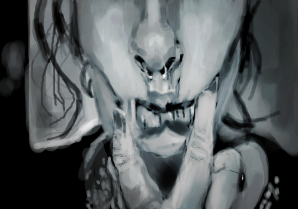 Hahah, funny face, your loose strokes go perfectly in this drawing.