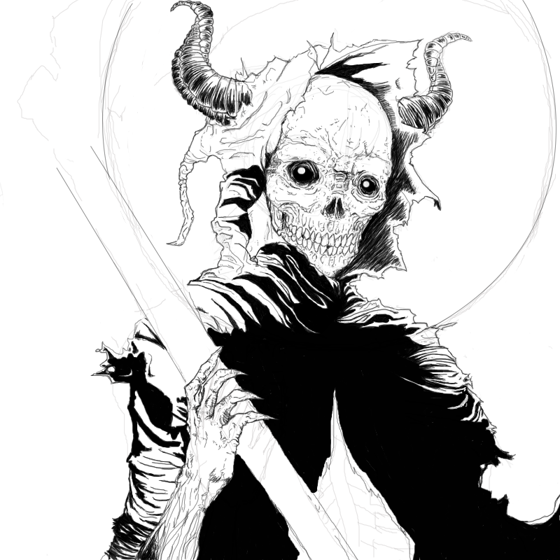 Looking at this again I keep wondering how it would look with empty eye sockets and the background moonscape texture showing through them...