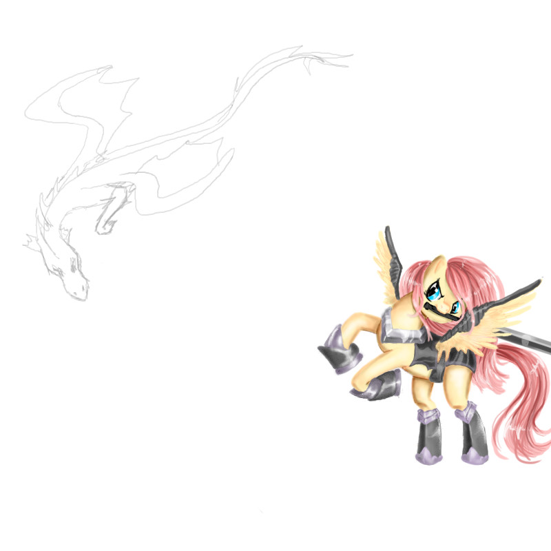 This is how the 'Dragonshy' episode should've ended xDAnd today I learned I can not draw dragons! :D or backgrounds.. Again, this picture is not finished but I ran out of room and cant edit it anymore, so you will need to enjoy it without lightning and rain. :( http://deo101.deviantart.com/art/Fluttershy-and-the-Dragon-321457064 you can go there if you want to see it finished