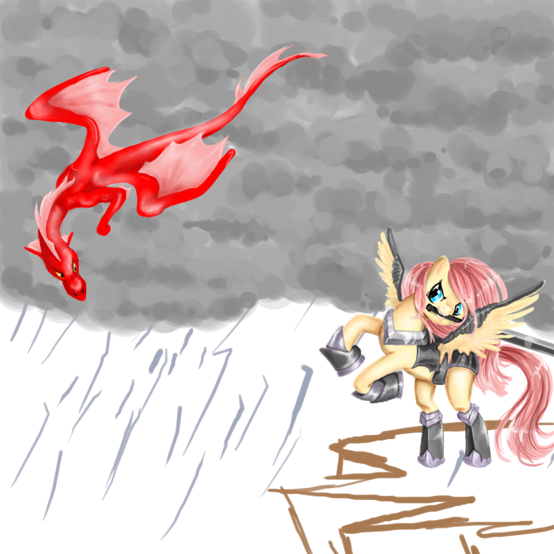 This is how the 'Dragonshy' episode should've ended xDAnd today I learned I can not draw dragons! :D or backgrounds.. Again, this picture is not finished but I ran out of room and cant edit it anymore, so you will need to enjoy it without lightning and rain. :( http://deo101.deviantart.com/art/Fluttershy-and-the-Dragon-321457064 you can go there if you want to see it finished