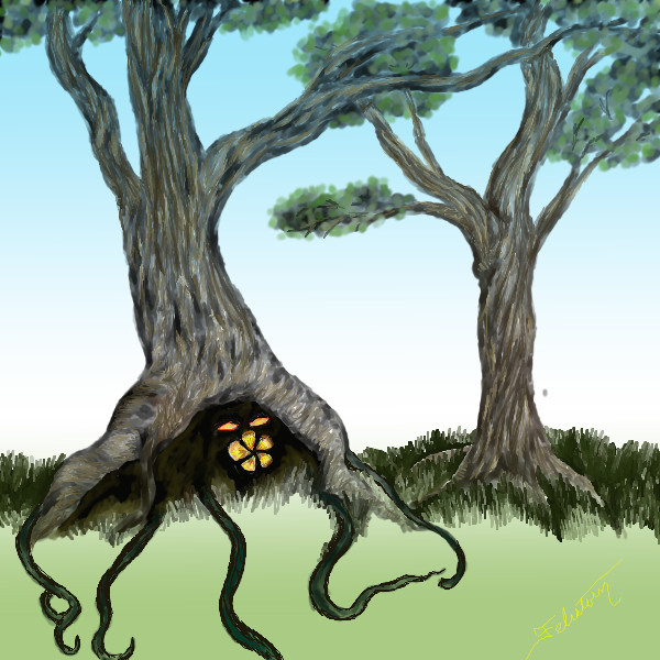 Day 2: Creature that starts out as a spore or seed like thing and grows under and then into a tree almost like a fungus. It then forms a bond with/fuses with the tree and the vine type appendages nourish the tree as roots would as well as the creature can move the tree if need be. It has a squid-like beak and can also use the appendages to catch prey. (Thought this one up yesterday but the other drawing took over)