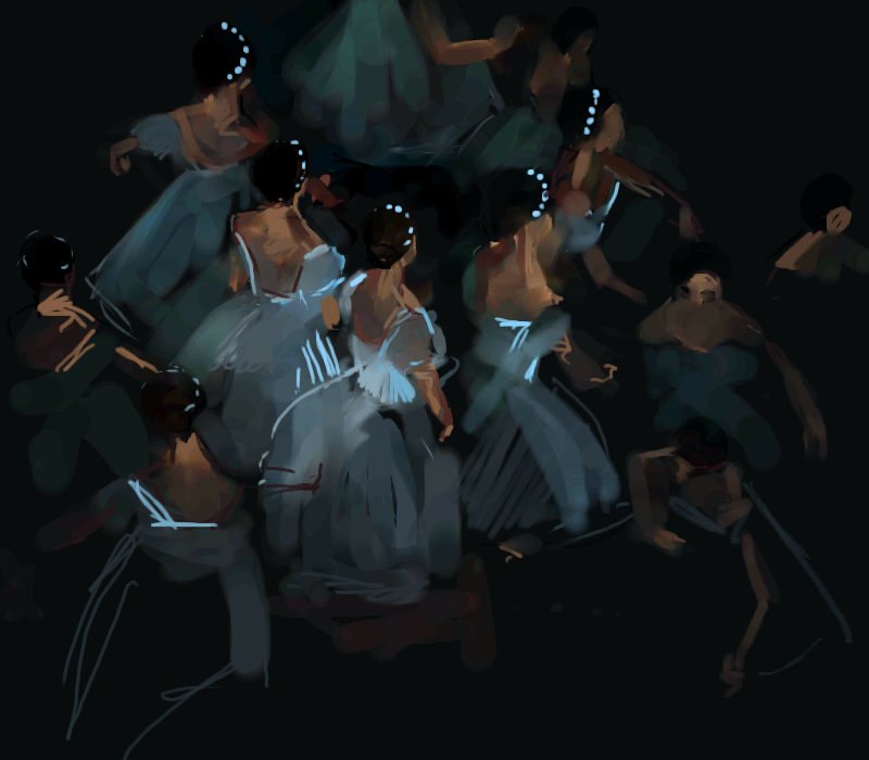 Degas would be jealous. This is so much fun to look at. I can feel the excitement of a bunch of dancers about to perform. They make me think of a flock of slightly silly-yet-beautiful birds.