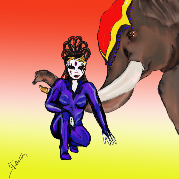 Not exactly fond of this one but it is 2am and I am tired. Vigilante circus performer who trains the elephants to do more than average circus tricks.