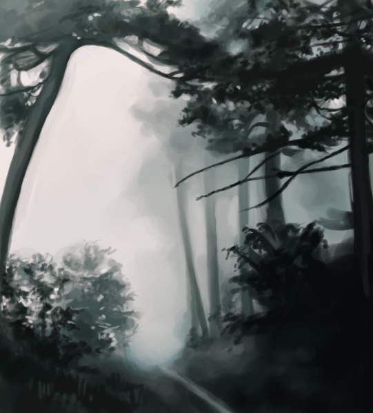 Wonderful use of values to create the illusion of mood, space and depth. The tree structure and perspective is also great. All put together it is very pleasing.