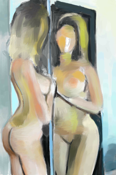 Nice so far, but the breast on the mirror looks slightly bigger than her real breast. Looking good either way. Just thought I would critique or whatever because I want to learn how to draw human figures too.