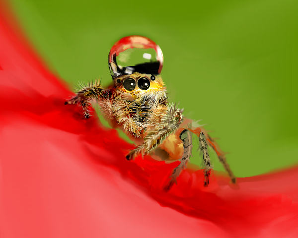 I have a love for all invertebrates, but jumping spiders are particularly beautiful. http://www.youtube.com/watch?v=GP_iTUFOroQ This one just happens to wear water hats.