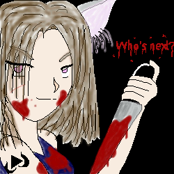 not very convincing blood splatter, though. it looks kind of splotchy and uneven, especially with the whitish spaces in between the red.