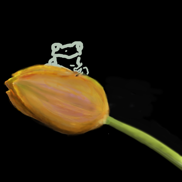 Do you have these little frogs? Every fall we used to get them by the hundreds, all over the porch and even in the house. But I haven't seen any for two or three years now. Very nice job with the water drops and the colouring of the tulip leaf is perfect. I used to have about 200 of that colour but the deer ate them all last year.