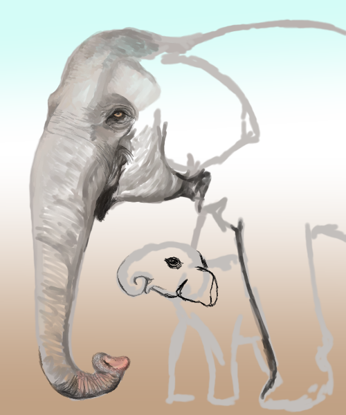 you have a baby elephant in your fridge? what area of the world did you say you live in?wonderful painting! elephants are matriarcal, as are whales.They even go back to the elephant graveyard to mourn those who are dead.They have a language.Pretty advanced critters.great