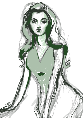 green girl in the grass...random stress relief drawing