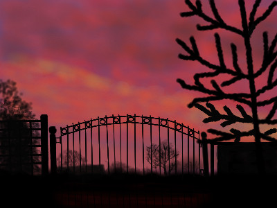That sky is so eye-grabbing and amazing details on that fence! If you hadn't said anything about the right post, no one would even give that a thought! In fact, it's BETTER this way! Nice piece!