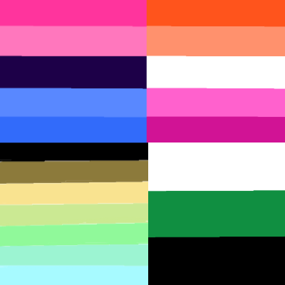 here are all of my flags (neutrois, cassflux, omniromantic and lesbian)