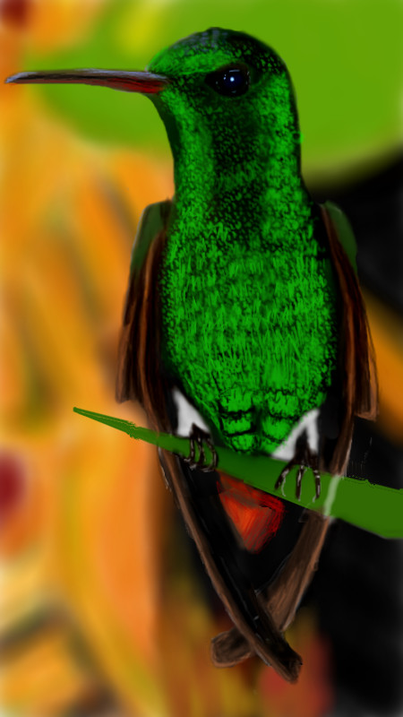 So as you can see, I was working on a lovely Hummingbird but did something I've NEVER done before! I accidentally clicked on the garbage can in layers and poof! It was gone forever..... :( SO, I played with the background and that's that.