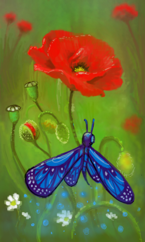 I really want to get back into the habbit of doing some long proper studies like I used to do, but I just can't stay interested in any one drawing for very long; after 2-3 hours I just want to be done with it and move on :/ Used a ref for the flowers, and added weird butterfly once I got bored.
