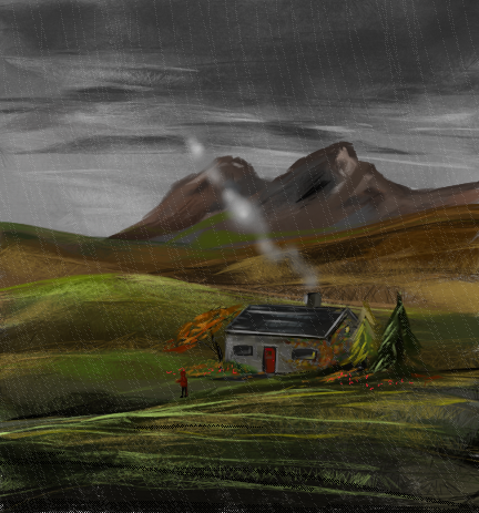 I missed this one! Very Autumn feeling for sure! I love the details of the cottage and the open, green pastures...just lovely