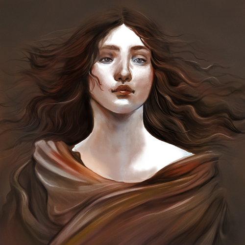 Pretty face. The presentation and her expression suggests she's someone important, like a priestess or from nobility or a goddess. Nice work.