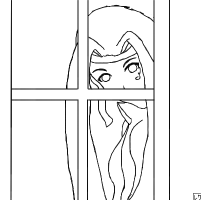 Just one of my characters peeking out of the window.Edit- NO! It won't let me edit it right. Half the buttons aren't showing about so I'm not going to be able to color it at all. Stupid glitchy computer. This happens every time explorer shuts me down in the middle of a picture.
