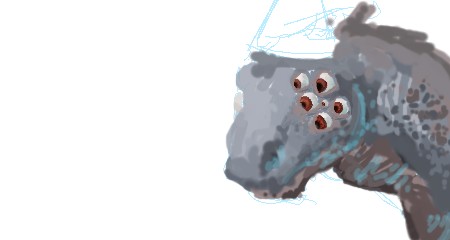 you sure do if that 10 eyed thing is eyeing you super! lol very imaginative creature ..he does look like he is wearing a green party hat though....((super))